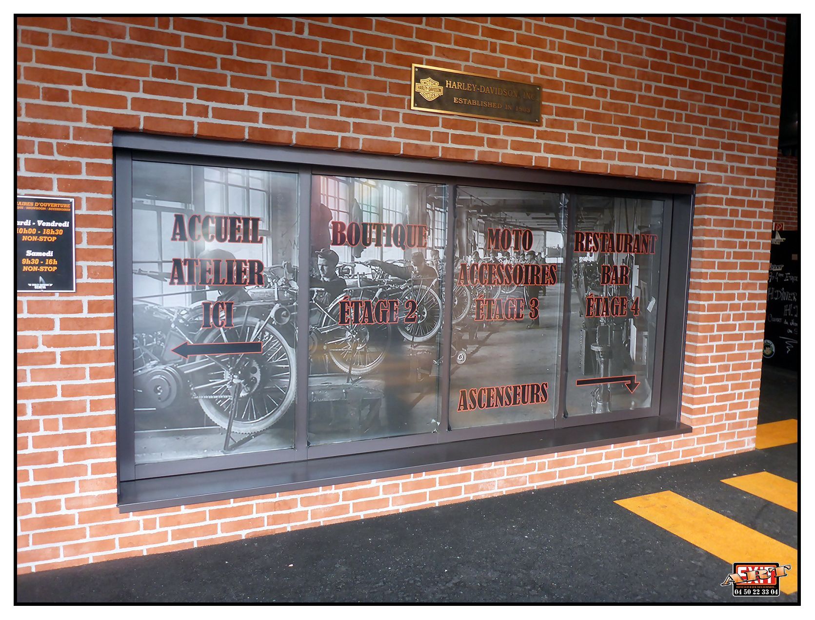 Design discret ou audacieux : les adhésifs sur mesure que nous concevons respectent parfaitement votre image de marque. ART EXIT, c'est aussi d'autres prestations comme la gravure laser.